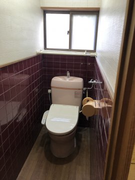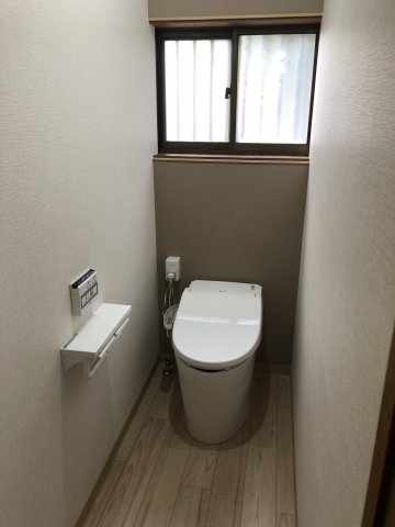 Janisのタンクレストイレに取り替えし、壁のタイルもクロスに張り替えています。