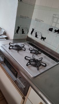 レンジフードとコンロは共にお手入れのしやすいものに交換させていただきました。