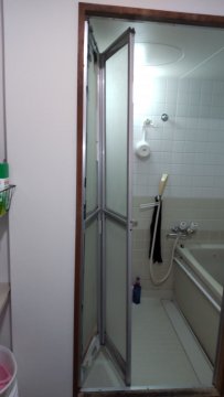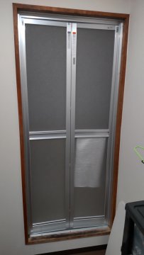 浴室ドアはカバー工法という既存の外枠の上から新しい外枠をかぶせた上でドアを交換する方法で交換させていただきました。