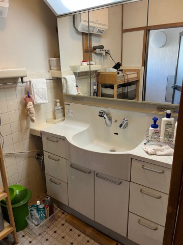 鈴鹿市にお住まいのI様邸にて、洗面化粧台の取替をさせていただきました。