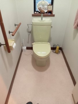 鈴鹿市にお住まいのO様邸にて、トイレリフォーム(トイレ取替、CF貼替)をさせていただきました。
