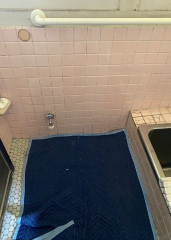 外壁側より給水・給湯管を引込み新規で取付させていただきました。