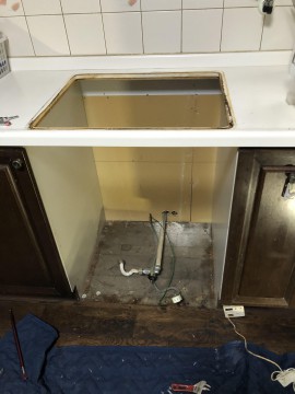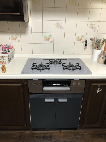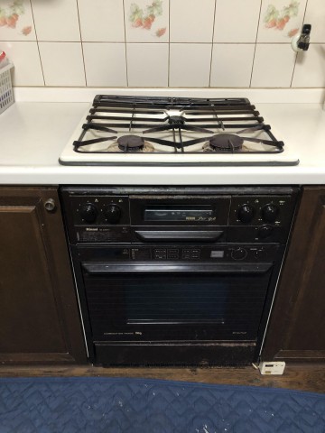 オーブン部がオープンになってしまいますので取替え用のキャビネットを取付け、ビルトインコンロに取替えさせていただきました。