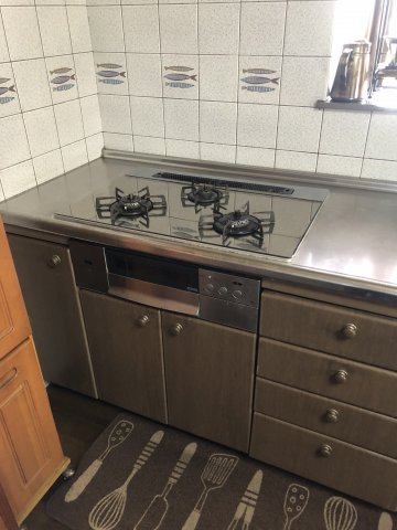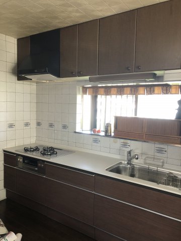 吊戸棚とレンジフードは替えずに、下のシステムキッチンとコンロの取替をご希望とのことでご来店されました。