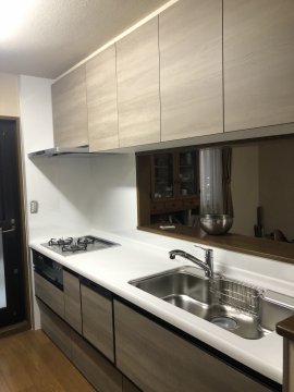 展示処分品とはいえ、スリム型レンジフード、ガラストップコンロ、食洗機付きのハイグレードなキッチンでしたので、お客様にも大変喜んでいただけました!